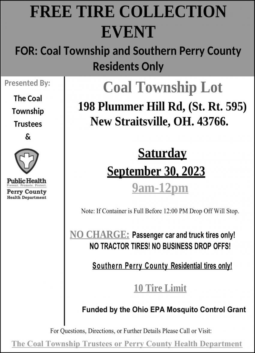 Sep 20, 2023. The Coal Township Trustees Or Perry County Health Department Events Ads from The Perry County Tribune