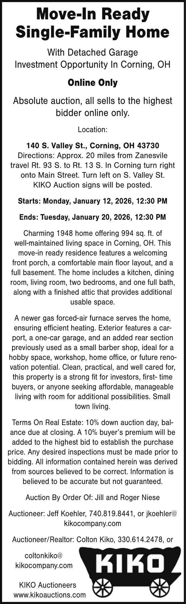 Jan 07, 2026. Kiko Auctioneers Auctions Ads from The Perry County Tribune