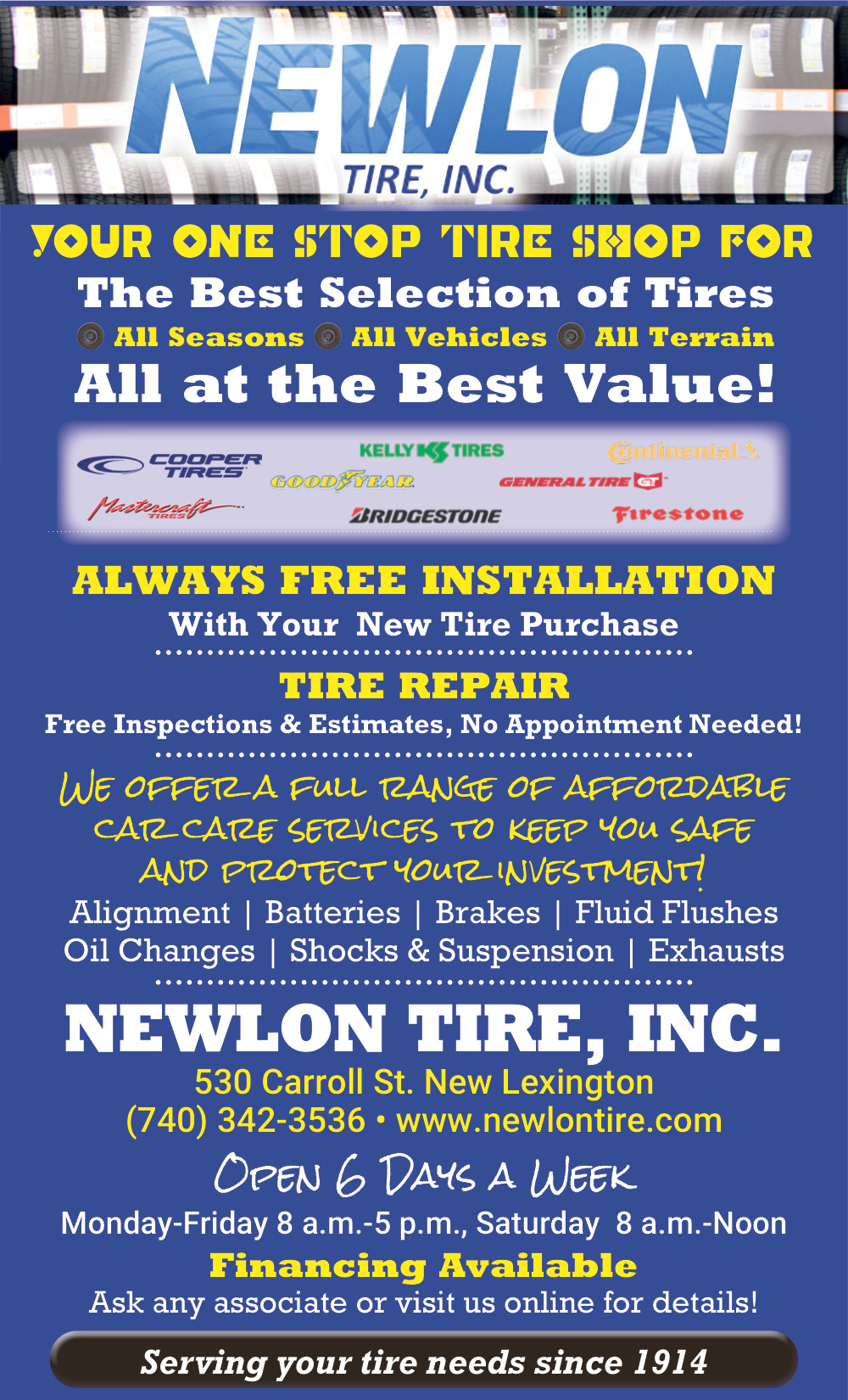 Ads for Newlon Tire, INC in New Lexington, OH