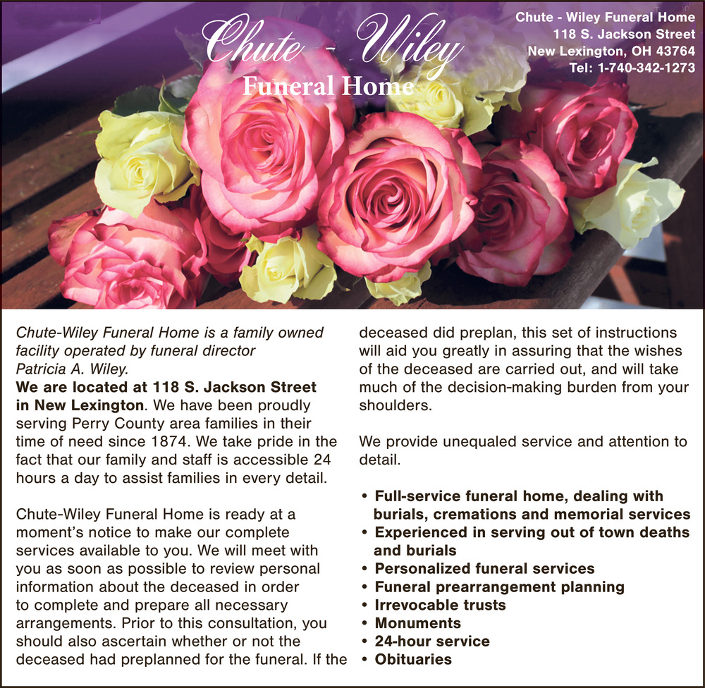 Ads for Chute - Wiley Funeral Home in New Lexington, OH
