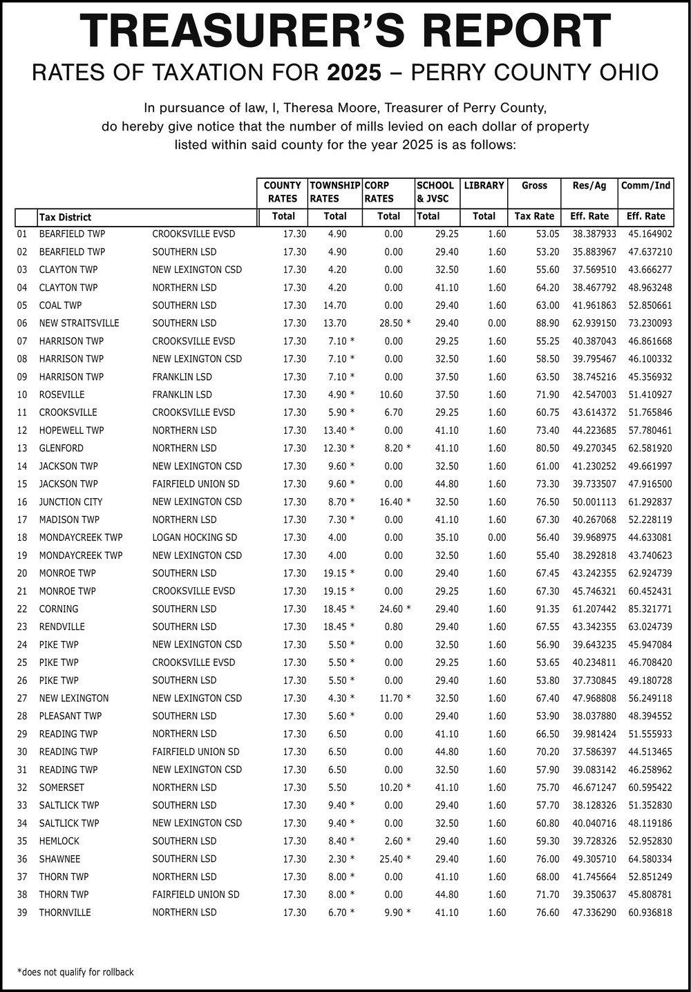 Jan 28, 2026. Perry County Treasurer's Office Government Ads from The Perry County Tribune